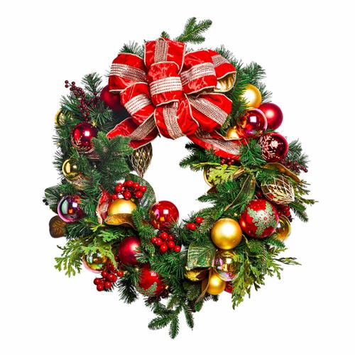 Wreath 60" Pre-Dec Red And Gold W LED Minis - Case of 1