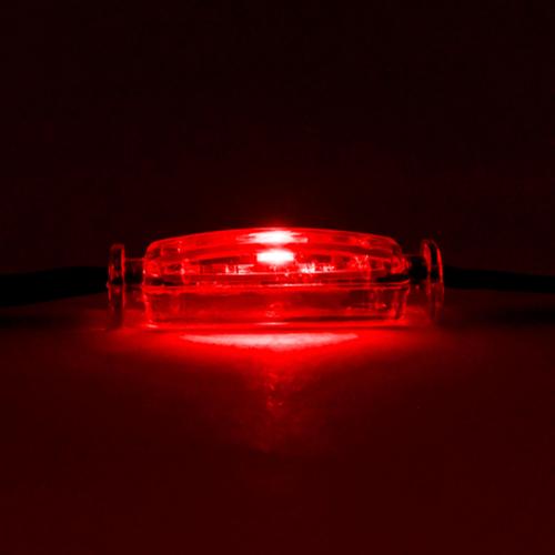 Flat single sided shape, with notches for zip ties or clips for easy mounting. Roughly 1.8” X 0.57” – Transparent bulb