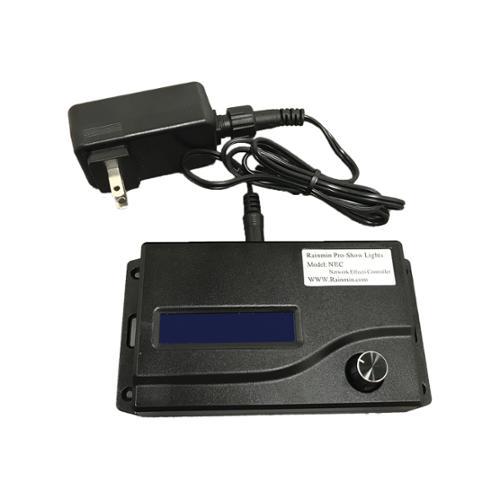 The Networks Effects Controller contains 23, two-dimensional effects built-in, controlled via an LCD display and rotary push-button knob. It contains an SD Drive that supports user generated lighting data and audio files. Audio files can be accessed by the 3.5mm audio output jack and supports .WAV files). Network port sends lighting data to NDBs and synchronizes with other NECs. Single DMX port (2 RJ45 jacks) sends DMX lighting data or receiving DMX commands.